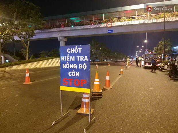Cơ quan chức năng lập chốt kiểm tra nồng độ cồn trên đường Phạm Văn Đồng vào khuya 5/1.